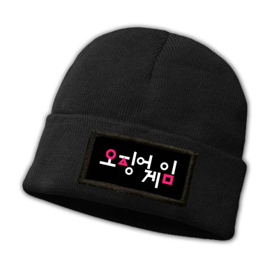 Pletena kapa sa zakrpom Squid Game "Korejski logo", jedna veličinaCrna pletena kapa sa zakrpom, sa m..